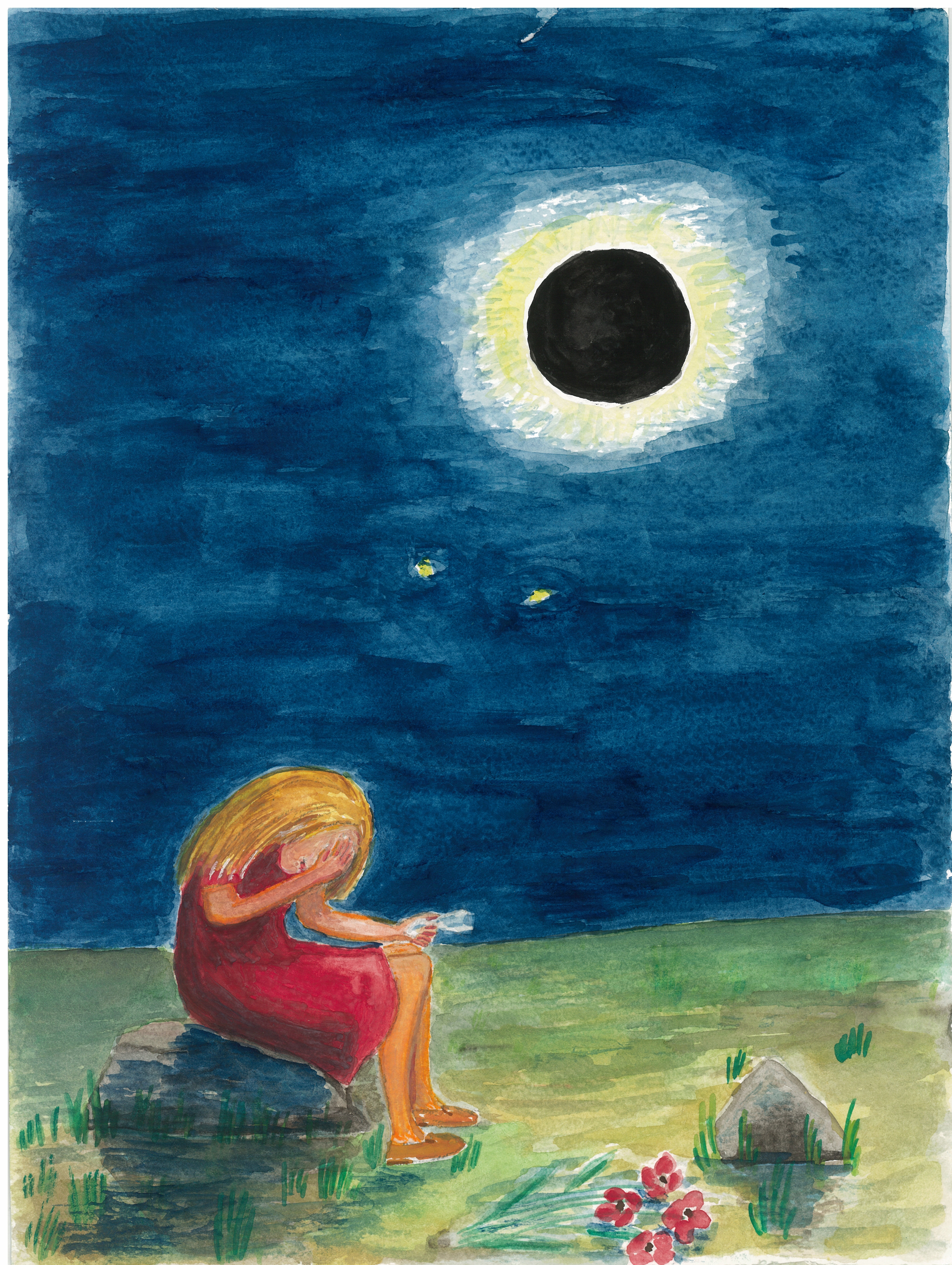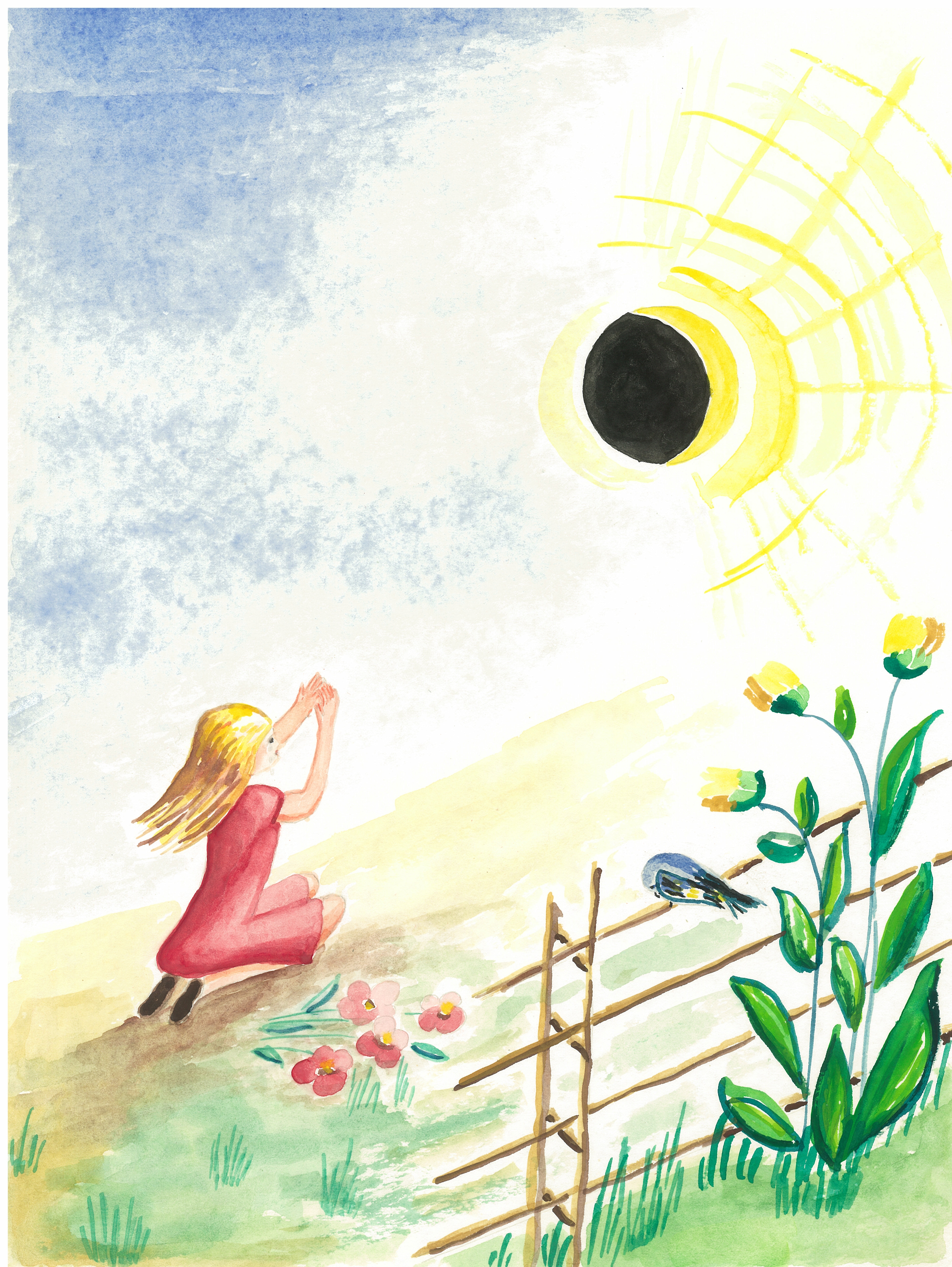 -KANSKJE DU FÅR SE EN SLIK SOLFORMØRKELSE EN GANG, SA MOR, MEN DA SKAL DU TA PÅ DEG MØRKE BRILLER SLIK AT DU KAN SE ALT SAMMEN UTEN Å FÅ VONDT I ØYNENE.